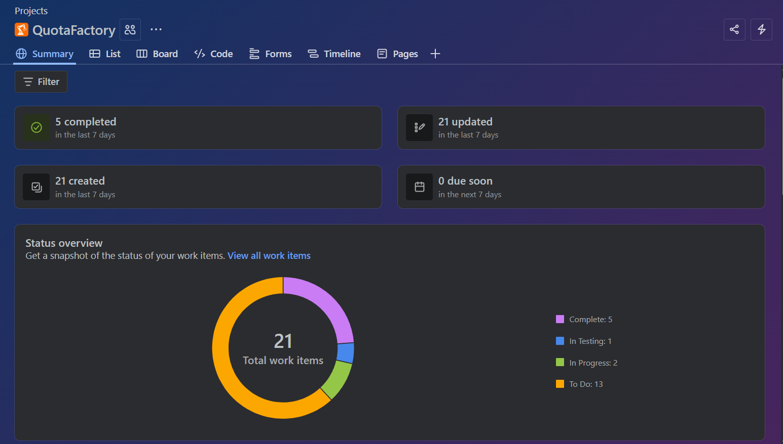 Since a whiteboard wasn’t an option, I thought I could use Project management solution which is in every GitHub repo. Personally I am a big fan of these but, since QuotaFactory isn’t on GitHub I figured that having an empty repo for tracking project progress felt weird and if I ever wanted to add someone it would be weird.